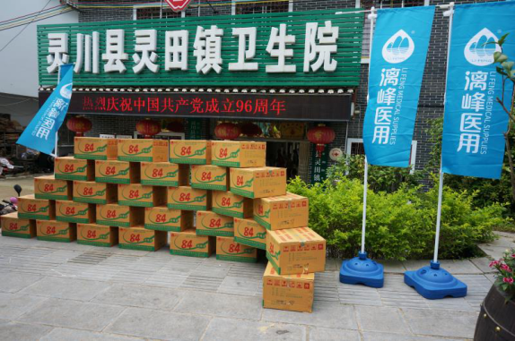 洪災無情,漓峰有愛。桂林漓峰醫藥災后捐贈小團隊,在公司領導劉副總經理的帶領下,一起深入洪澇災害后消毒防疫的一線。走進了靈川縣衛生院、靈川縣靈田鎮衛生院、靈川縣大圩鎮中心衛生院,親手把漓峰愛心的消毒產品一箱箱一件件地送到災區人民手中,向災區人民專遞出濃濃的“一方有難,八方支援”的人間真情。