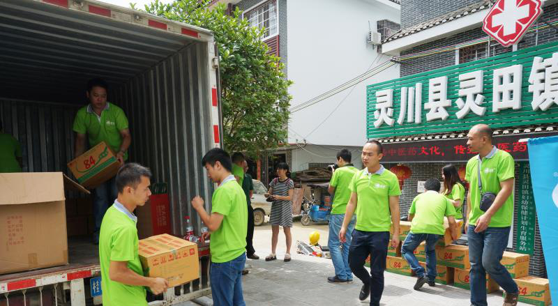 (漓峰醫藥)捐贈抗洪消毒用品現場發放