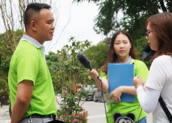 桂林漓峰醫藥的企業員工積極地發放消毒用品