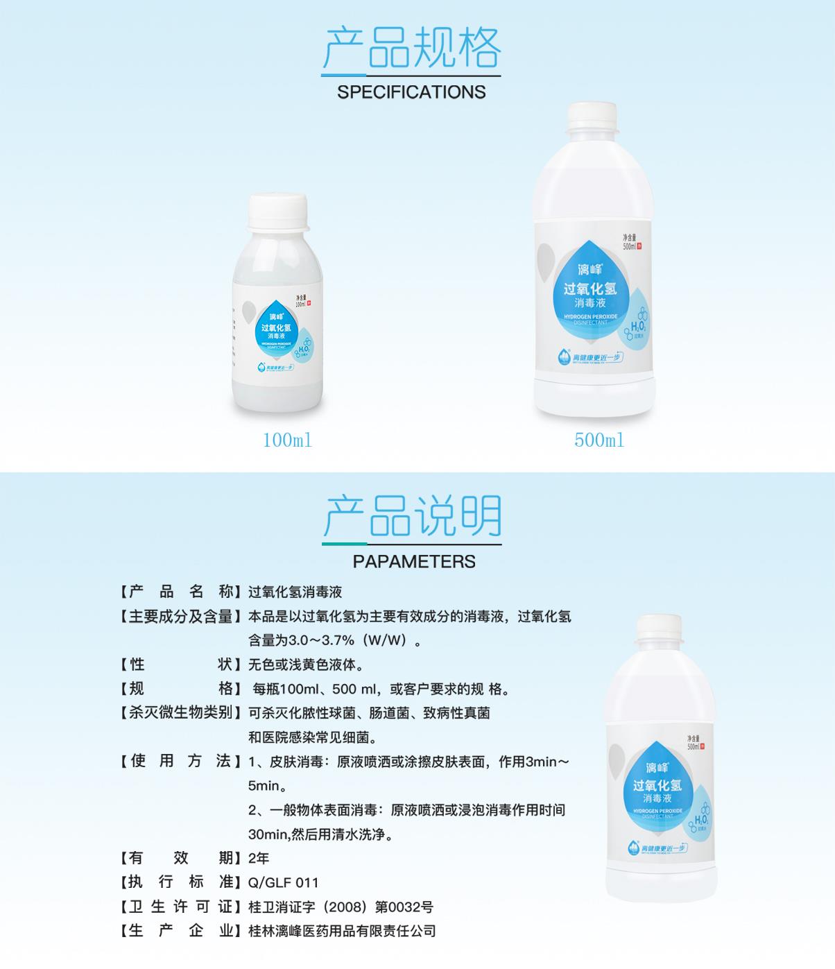 主要成分:本品是以過氧化氫為主要有效成分的消毒液,過氧化氫含量為3.0~3.7%(W/W)。
