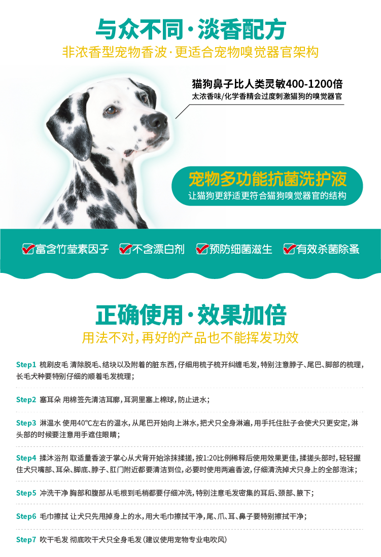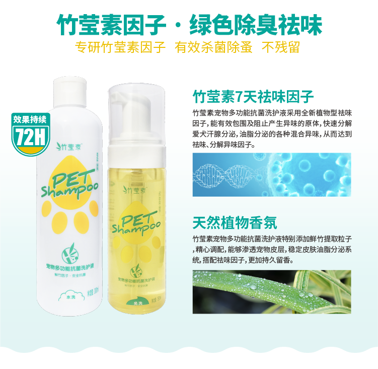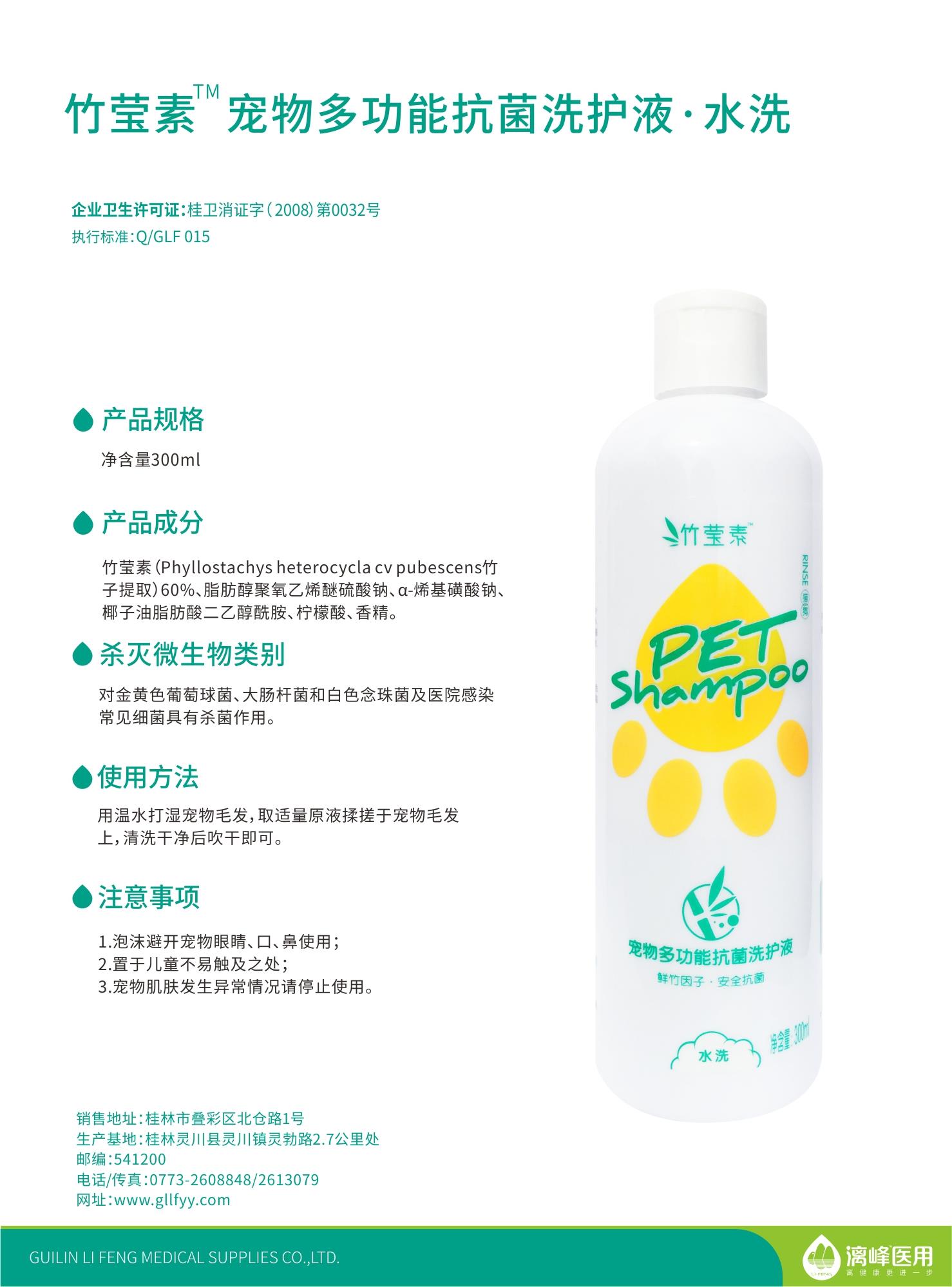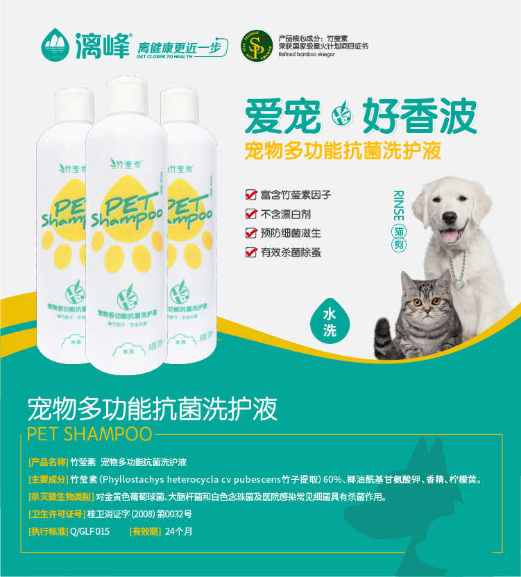 產品名稱:竹瑩素TM寵物多功能抗菌洗護液·水洗