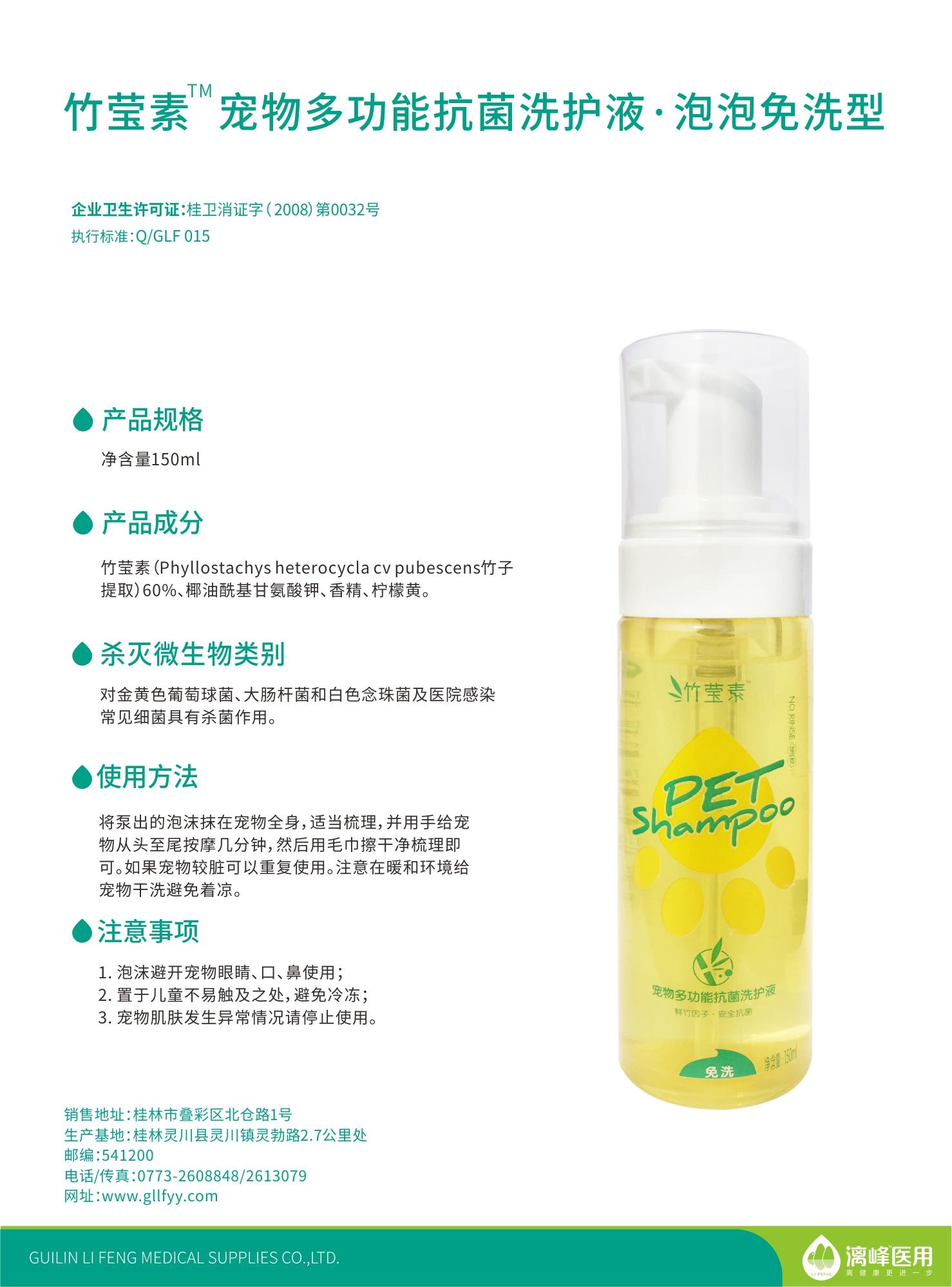 產(chǎn)品名稱:竹瑩素TM寵物多功能抗菌洗護液/泡泡免洗型