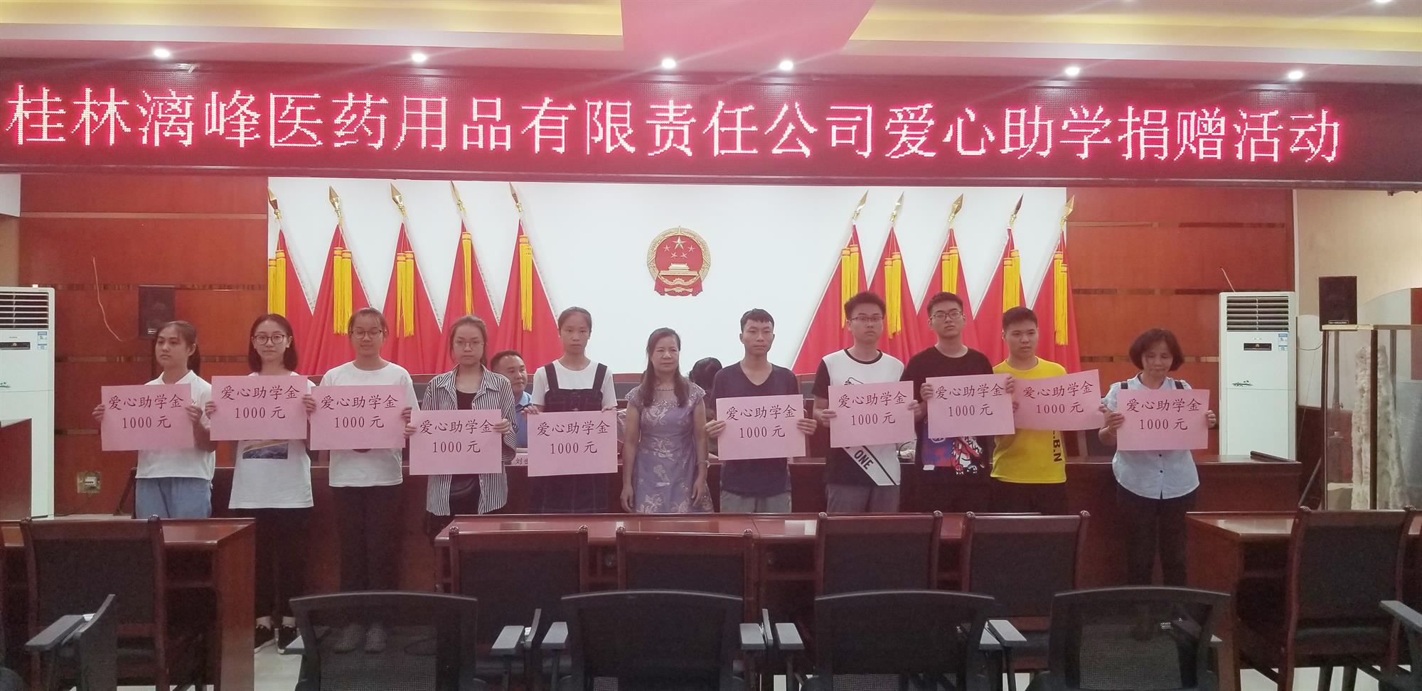 捐資助學(xué),獎(jiǎng)優(yōu)助勤,是我們中華民族的傳統(tǒng)美德,桂林漓峰公司作為靈川鎮(zhèn)的一家國家防疫物資生產(chǎn)儲(chǔ)備單位,在全力保障防疫物資生產(chǎn)儲(chǔ)備同時(shí),也不忘將愛心傳遞,捐資助學(xué),點(diǎn)亮學(xué)子的夢(mèng)想。