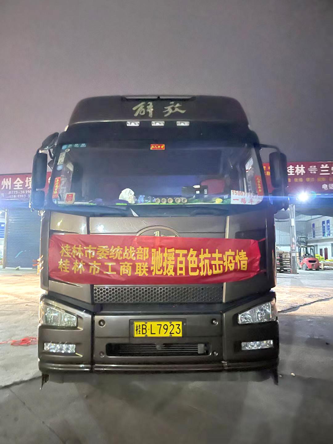 “一方有難,八方支援”,滿載愛心物資的大貨車啟程奔赴百色。