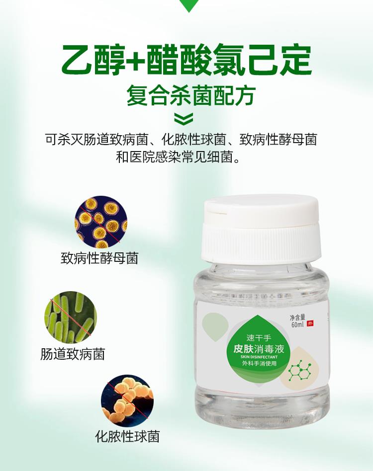 有效成分及含量:本品是以醋酸氯己定、乙醇為主要殺菌成分的消毒液,其中醋酸氯己定5g/L±0.5g/L,乙醇含量為70%±7%(V/V)。