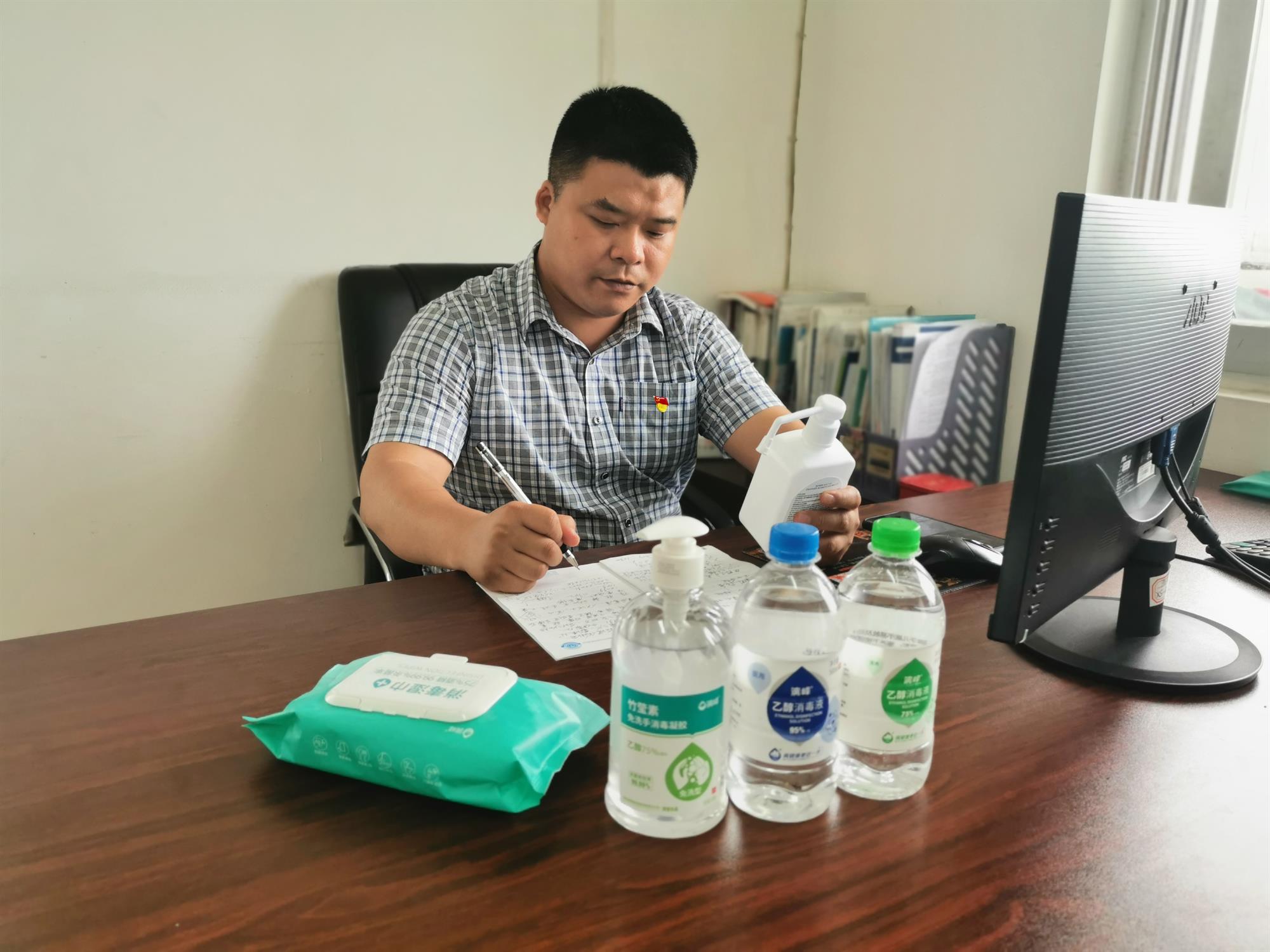 新冠疫情爆發三年來,為保防疫物資生產,只要蔣威不出差,他都是積極主動的奮戰在生產一線。